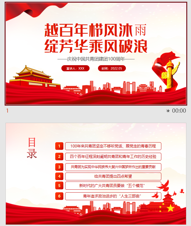 本文标题:越百年栉风沐雨 绽芳华乘风破浪——解读庆祝中国共产主义青年团成立100周年大会讲话精神PPT